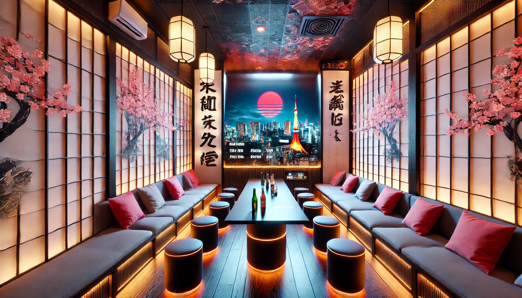 “Bienvenue à Tokyo 🎌✨ – Plongez dans une ambiance futuriste et vibrante, au cœur des lumières néon et des rues animées de Shibuya. 🎤🌟 Laissez-vous emporter par l’énergie de la culture japonaise entre tradition et modernité pour une soirée inoubliable. 🌸🎶”